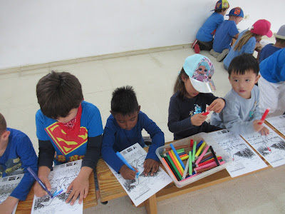 EL PRIMER TALLER FUE CON JUDIT, EN EL GIMNASIO: "REALIDAD AUMENTADA". LOS NIÑOS Y NIÑAS PINTARON UN DINOSAURIO Y LUEGO CON UN LECTOR DE QR EL DINOSAURIO TOMABA VIDA