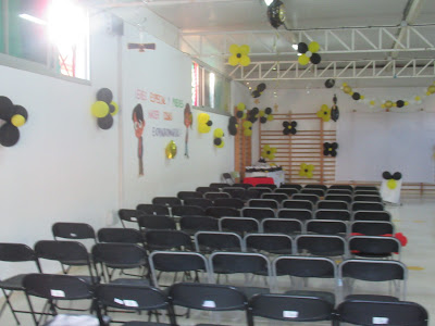 EN LA VÍSPERA DE LA FIESTA DECORAMOS EL GIMNASIO. CREO QUE HA QUEDADO PRECIOSO.